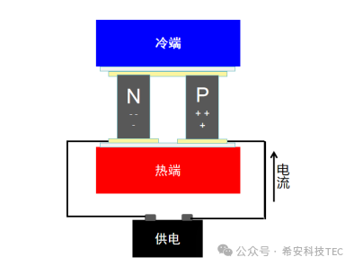 Жартылай өткізгішті салқындату принципі (Peltier эффектісі) : p-типті және n-типті жартылай өткізгіш материалдар арасындағы байланыс бетінен ток өткенде, тасымалдаушылар салқындатуға жету үшін (суық ұшы) ауысады және жылуды сіңіреді, ал жылу екінші жағынан (ыстық ұшы) бөлінеді.